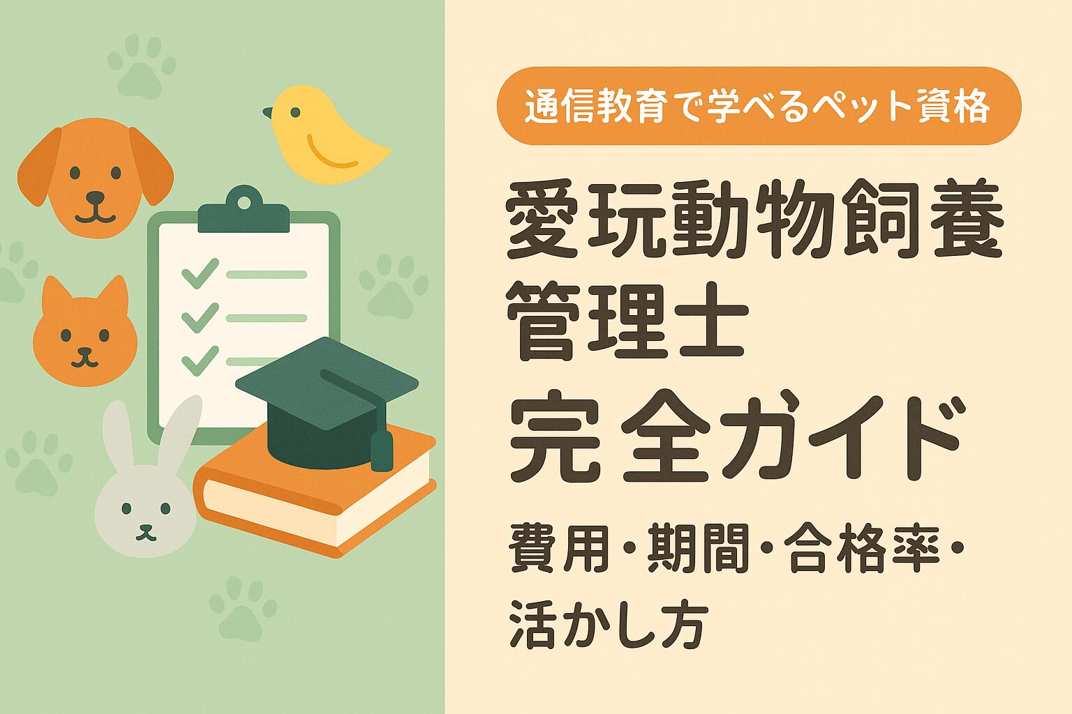 動物病院やペットショップ、トレーナー、ペットサービスなど幅広い現場で活用でき、地域の動物愛護活動でも力を発揮します。合格率は回により変動しますが、公式カリキュラムに沿って計画的に学べば十分に取得を目指せるレベルです。動物の適正飼養を社会に広げたい方にとって、実務に直結し学びやすい有力な選択肢と言えるでしょう。