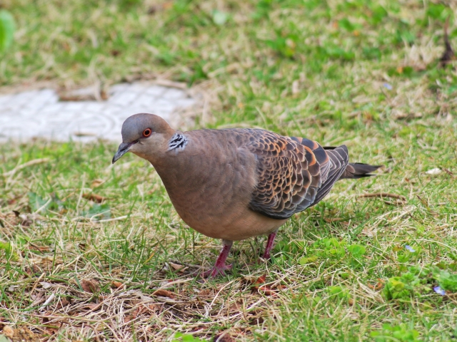キジバトは日本の山地や農村地域に古くから生息する在来種で、ドバトよりもやや大きく、茶褐色を基調とした美しい羽毛を持っています。最も特徴的なのは首周りの白と黒の縞模様で、この模様がキジバトの識別ポイントとなっています。鳴き声も独特で、「デデッポッポー」という特徴的な声で鳴きます。