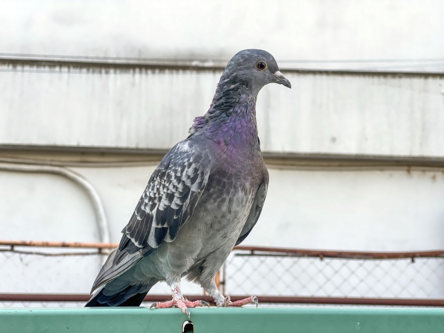 鳩は灰色の羽毛に緑や紫の金属光沢を持ち、比較的コンパクトな体型をしています。また、強い帰巣本能を持ち、一度巣を作った場所への執着心が強いのが特徴です。